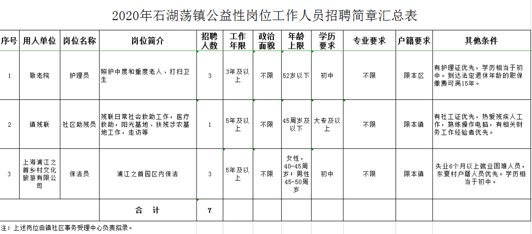 6.具體崗位及崗位所需的資格條件詳見(jiàn)《2020年石湖蕩鎮(zhèn)公益性崗位工作人員招聘簡(jiǎn)章》。